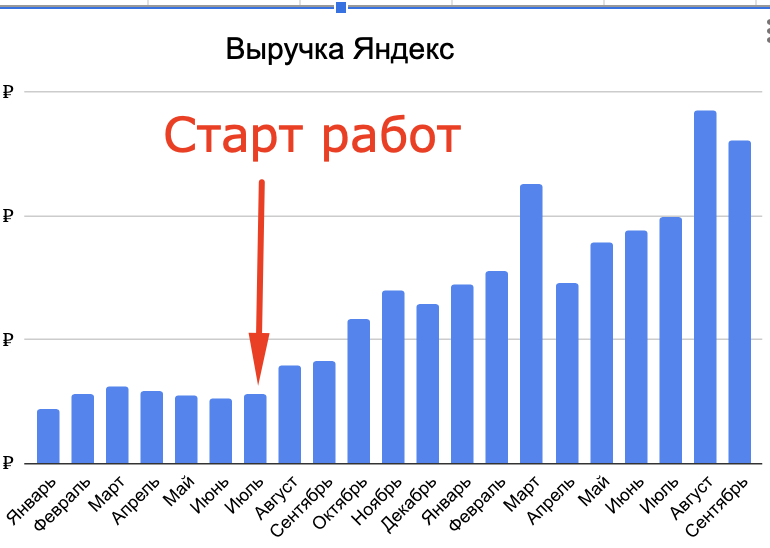 Вопросы по выручки, тоже не могу обсуждать. Но цифры с 6 нулями, после моей работы увеличил в 5 раза от предыдущих результатов. Прикрепляю график.