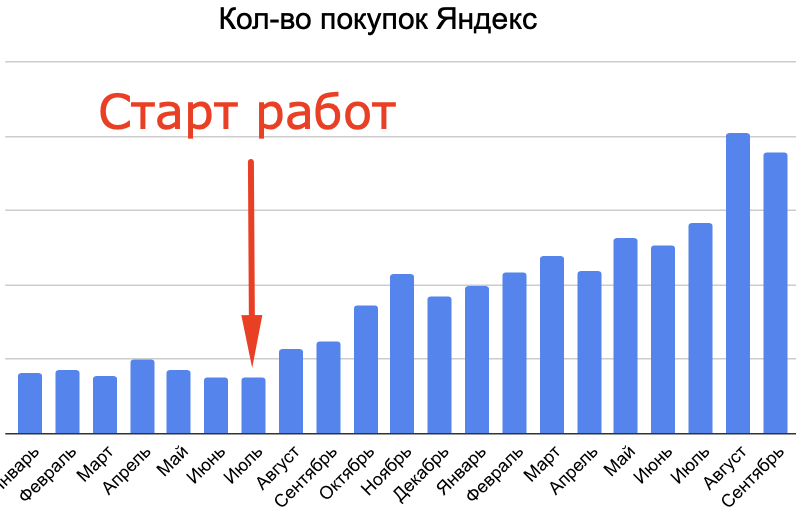 Одним из самых приятных моментов стали подведения итогов за 1 месяц работы, где эффективность от правок сдела в 2 раза лучше результат. А дальше на протяжении года было приятно наблюдать за планомерным ростом заявок.